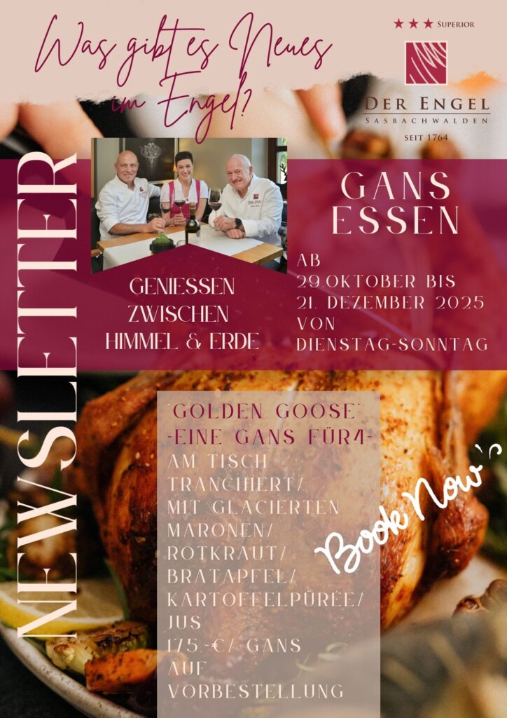 Im Engelsboten und unserem monatlichen Newsletter erfahren Sie als Erste, was es Neues im Engel gibt – von kulinarischen Highlights über besondere Events bis hin zu exklusiven Arrangements.